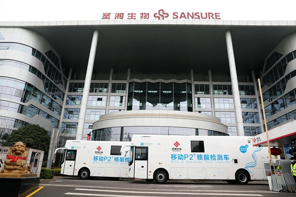 目前,北京、广东、黑龙江、四川、山东等多省均已配置移动核酸检测车。mile米乐集团生物此次投入使用的移动P2+核酸检测车共2台,为湖南省首批投入使用的移动核酸检测车,可实现采样、检测、报告一站式服务,2台日检测量(10混1)可达10万人份,最快45分钟内出结果!